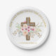 Personalized Baptism & Christening Floral Cross Paper Plate