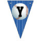 Baseball themed Happy Birthday bunting with striped background and editable so you can add name, available in other colours and other sports