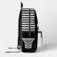 Score big with this bold and sporty black and white left-handed basketball backpack for boys, featuring a powerful basketball player silhouette on the front. Whether heading to school, summer camp, a weekend sleepover, sport, basketball practice or travel, this custom backpack is built for comfort, style, and performance.