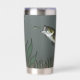Personalized bass fish chasing a smaller fish. Hand drawn background of water with weeds on the bottom, faint light rays showing through. Personalization is vertical and towards the back. The personalization font style, size and colour can be changed to suit.