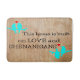 wood grain background with turquoises birds and heart with the words "This house is built on love and shenanigans.