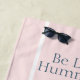 This pretty pink beach towel gives great life advice from the the hummingbird and is personalized with your name.