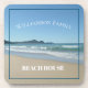 Entertain your guests in style with this stylish set of six coasters, perfect for your beach house or vacation home. The design features the tranquil blue waters of Seal Rocks, off the coast of Sydney, Australia. The stylish white text is customizable so you can add your own family name.