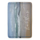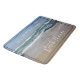 Personalized Beach House Ocean bath mat features a tranquil photograph of the blue and white waves, blue skies and golden sand of coastal Melbourne, in Australia. Make your house a home with this calming bath mat. The text is in modern, white font which is customizable so you can add your own family name.
