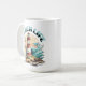 Beach Life Water Bottle. Illustration of a beachy scene with lighthouse, surfboards, palm trees and dolphin. Add name or quote in personalize area.