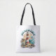 Personalized Beach Bag. Illustration of a beachy scene with lighthouse, surfboards, palm trees and dolphin.