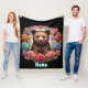 Personalized Bear Cub with Roses and Hearts Fleece Blanket