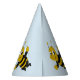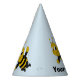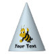 Customizable Party Hat with illustration of flying bee, with custom text template for your name or message, illustration by MaxiHarmony / Radka Kavalcova