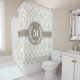 Elevate your bathroom décor with this elegant beige and mocha shower curtain featuring a Moroccan-inspired quatrefoil pattern. The intricate design and customizable initial create a unique and stylish accent for any bathroom.