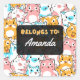 Personalized Square Sticker saying "BELONGS TO" with cute kittens.