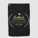 Elegant black and white golf towel. Design features of trendy golf icon, best daddy by par typography script and name in block capital letters . Perfect gift for dads.