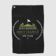 Elegant black and white golf towel. Design features of trendy golf icon, best Fiancé by par typography script and name in block capital letters . Perfect gift for future husband.