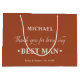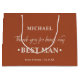 Personalized BEST MAN gift bag with terracotta and almond cream colour palette. The name template is set up ready for you to add the best man's name as well as the bride & groom's names and wedding date. The thank you wording reads "Thank you for being my best man" in a blend of elegant script and strong, bold typography. Please browse our store for alternative colours and size.