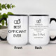 The personalized "Best Officiant Ever" design is a perfect thank you gift for the best officiant who made your wedding day special. This customizable design is perfect for weddings, anniversaries, or appreciation events. Add names, dates, or a short message to make your officiant smile every day. This personalized officiant gift is perfect for expressing gratitude and making your special day unforgettable.