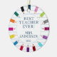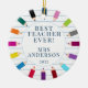 Best Teacher Ever Christmas Ornament featuring coloured pencils with a lined paper background. Easy to personalize with your teachers name and date.