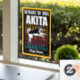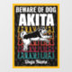 Personalize this Beware of Dog window cling featuring an Akita dog jumping in front of vintage coloured AKITA typography. Edit top BEWARE OF DOG text and edit DOG NAMES. Great dog sign for warning others.