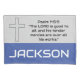 Personalized Bible Quote with Christian Cross Blue/Grey Pillow Case. Customize—Add your child's name and favourite scripture verse. Lion and lamb cloud image. Makes a great baby shower gift or first birthday gift.