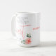 Feel cozy inside of your home with this custom coffee mug featuring a Bible quote and in the middle is the custom name. It is great gift for housewarming celebration but for other occasions, too . Personalize this template by click on button PERSONALIZE to change the family name.