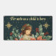 Add a touch of holiday spirit to your workspace with our Personalized Biblical Nativity Child & Verse Desk Mat. This beautifully designed desk mat features the heartfelt phrase “For unto us a child is born” in an elegant font, bringing a message of faith and joy to your desk. Below the verse, a young child dressed in a light robe and adorned with a garland of holly and berries stands among vibrant red poinsettias, holly leaves, and pine branches. The dark, starry background with golden snowflakes creates a magical, serene ambiance, perfect for the Christmas season.