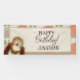 This banner is perfect for your little boy's Bigfoot themed birthday party. The banner is created with a Bigfoot illustration, which will help make your party more exciting. The banner is printed on a vinyl banner, which is easily hung so you can hang it up quickly. The banner is personalized with your child's name and the words happy birthday and string lights in the back.