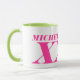 Personalized big giant jumbo XL Extra large coffee mug. Funny gift idea for home or co workers in the office. XXL cup for men and women. Add name. Pink and green colours.