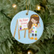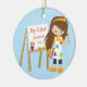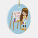 Cute & Bright Big Sister artist girl Christmas Ornament set on a blue polka dotted background featuring a brunette artist girl with an easel & paints. A Wonder Christmas gift sure to be treasured for many years to come.