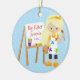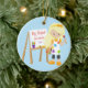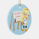 Cute & Bright Big Sister artist girl Christmas Ornament set on a blue polka dotted background featuring a blonde artist girl with an easel & paints. A Wonder Christmas gift sure to be treasured for many years to come.