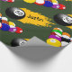 Add a personal touch to your gift giving with this fun gift wrap with the eight ball personalized with age and the recipient's name on fire behind the eight ball.