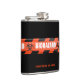 Humourous black drinking flask with graphics of a orange Caution BioHazard tape, running around the flask. Personalize the orange text, on the bottom front to read what you want. Great gift idea for any guy and especially great as a wedding party gift for groomsmen.