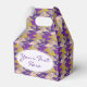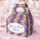 Graphic birds seamless pattern. Tesselation with cute birds in blue purple and golden tones. Customizable favour box. You can easily change size position of the design (scaling) and add your own text for many occasions.