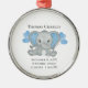 Personalized Birth Stats Baby Elephant Blue Grey Metal Ornament