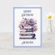 Add a name to this personalized birthday card for her. Pretty pink and blue vintage pile of books with roses on the top AI art personalized water bottle.
