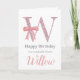 Happy Birthday card for her! This card is for a letter W (see the rest of our shop for other letters). The main large letter W is fixed but all the other text can be personalized to meet your requirements!