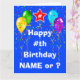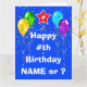 Fun Bright Confetti coming down on Cheerful Bright Balloons with BIG BOLD Happy Birthday Card Message with AGE, (within the Red Star) and with the Happy Birthday Message along with NAME or YOUR TEXT or DELETE any Text or Design. Large Birthday Cards Personalised with YOUR TEXT or Change the Occasion, too. FULLY CUSTOMIZABLE Birthday Cards.