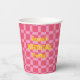 Personalized Birthday Party Pink Chequered Pattern Paper Cups