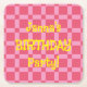 Personalized Birthday Party Pink Chequered Pattern Square Paper Coaster