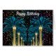 Personalized birthday card, fantastic palms with lights, snow and stars are falling on the black background.