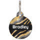 A brown and faux gold patterned pet tag with space for your pet's name and your phone number or other contact information.