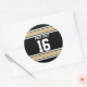 Personalized Black and Gold Sports Stripes Classic Round Sticker