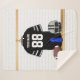 A fun design for the budding grid iron star or American football fan, this black and silver grey grid iron jersey can be customized with any number and name to create a gift for the football player, grid iron coach or football fan. Also featured beside the football jersey is a water bottle, an American football and a grid iron helmet.