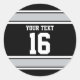 Personalized Black and Silver Sports Stripes Classic Round Sticker