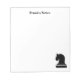 Personalized black and white chess writing memo notepads for chess lovers, grand master and other players of the game. Custom note pads with knight icon and name. Personalized memo pad design for home, club, school or office. School / office supplies for men, women and kids. Customizable background colour. Cute gift idea for dad, teacher, mom, friend, coach, etc. Also available on stationery paper.