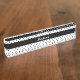 Personalized black and white polka dot pattern name plate. Black polka dots on a white background and a black band in the middle with your custom name.