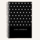 Add a touch of elegance and fun to your daily notes with our Personalized Black and White Polka Dots Notebook. This stylish notebook features a classic black cover adorned with playful white polka dots, making it a chic accessory for school, work, or personal journalling.  It also makes a thoughtful gift for friends, family, or colleagues who appreciate stylish stationery.  Stationery gifts for kids under $50.
