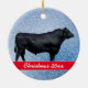 A photo of a black Angus bull on a background of snow is perfect for the Angus breeder.