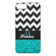 Personalized Black Chevron Cyan Glitter Case-Mate iPhone Case