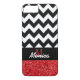 Personalized Black Chevron Red Glitter Case-Mate iPhone Case