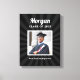 Modern black wrapped canvas wall art will showcase your graduate for years to come. Design features a square photo of the grad framed in white with simple and classic first name, class year, and school name wording that can be personalized. Includes a subtle starburst pattern. Black background colour can be modified to coordinate with school or photo colours.