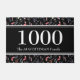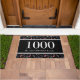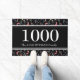 Personalized Black Floral Doormat, with large 4-digit number and sample family name in white typography. The number is CUSTOMIZABLE (full width) and the family name line can be replaced with alternative text. The background color (and panel) can be changed by clicking Customize Further. This would make a great personalized gift for New Homes.