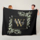 Elégante aquarelle verte feuille nom monogramme fleuri couverture en toison avec un monogramme or initial sur un arrière - plan noir avec votre nom dans un script blanc élégant. Conçu par Thisisnotme©